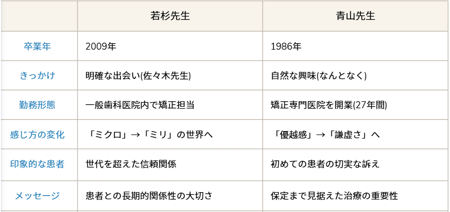 この対比が示すのは、矯正医を目指すきっかけに「正解」はないということです。
