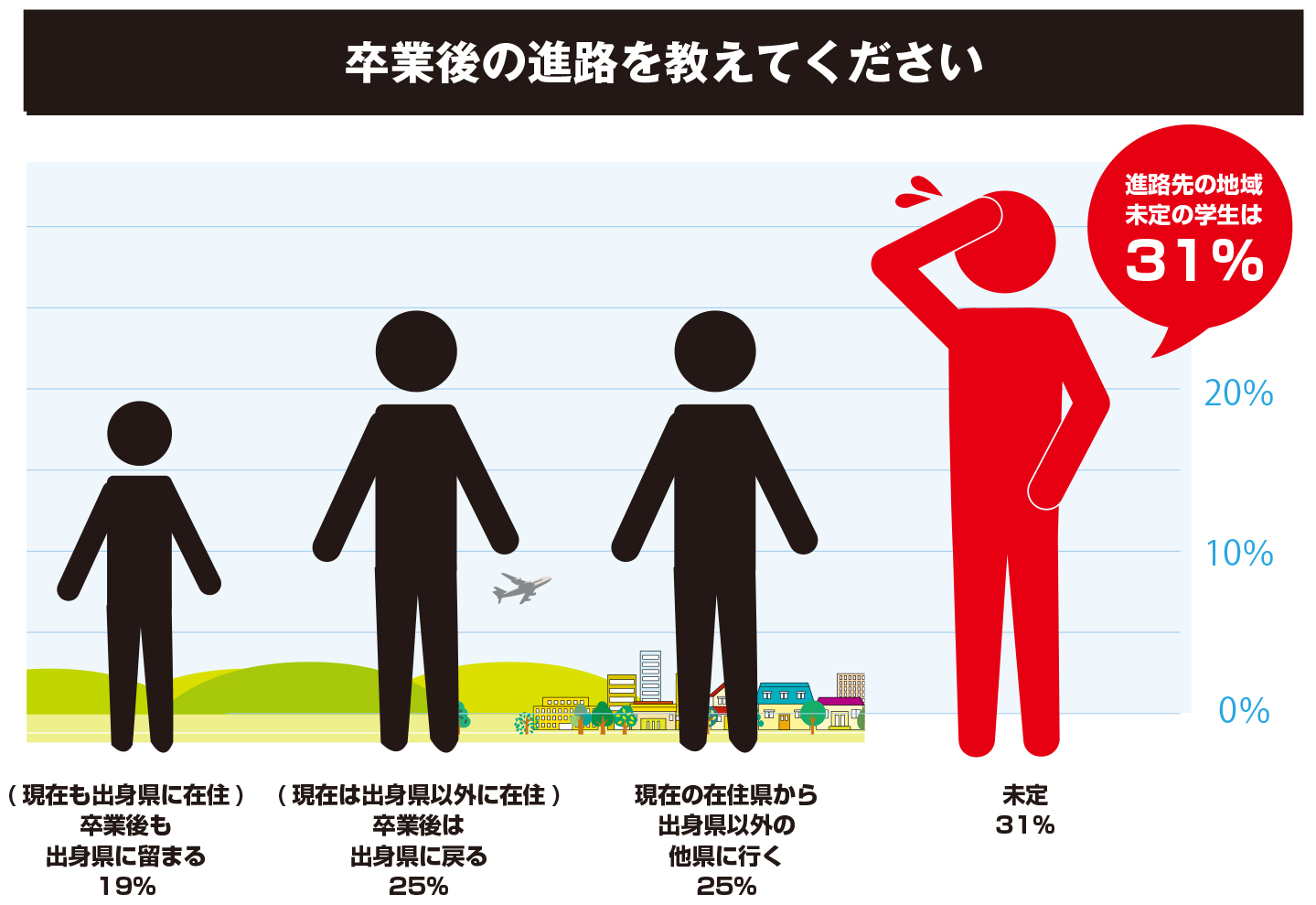 (現在は出身県以外に在住)卒業後は出身県に戻る→25%